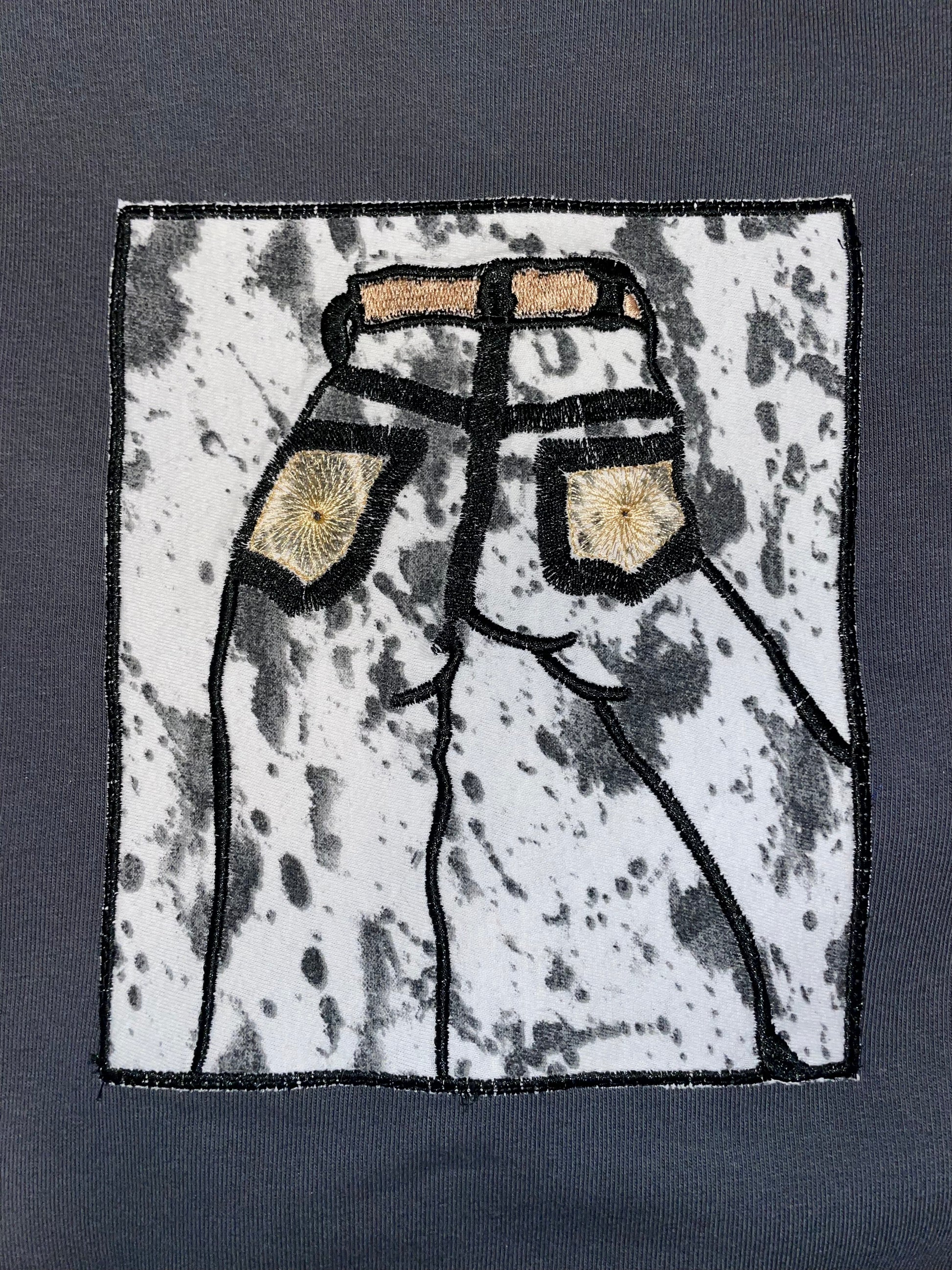 Thrifted sweatshirt featuring original Ten Moon embroidered patchwork.