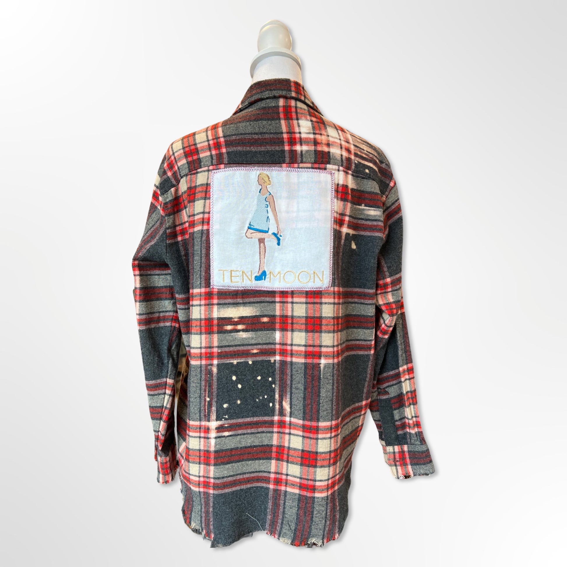 A classic flannel with acid wash detailing. Enhanced with original Ten Moon Girl patchwork.