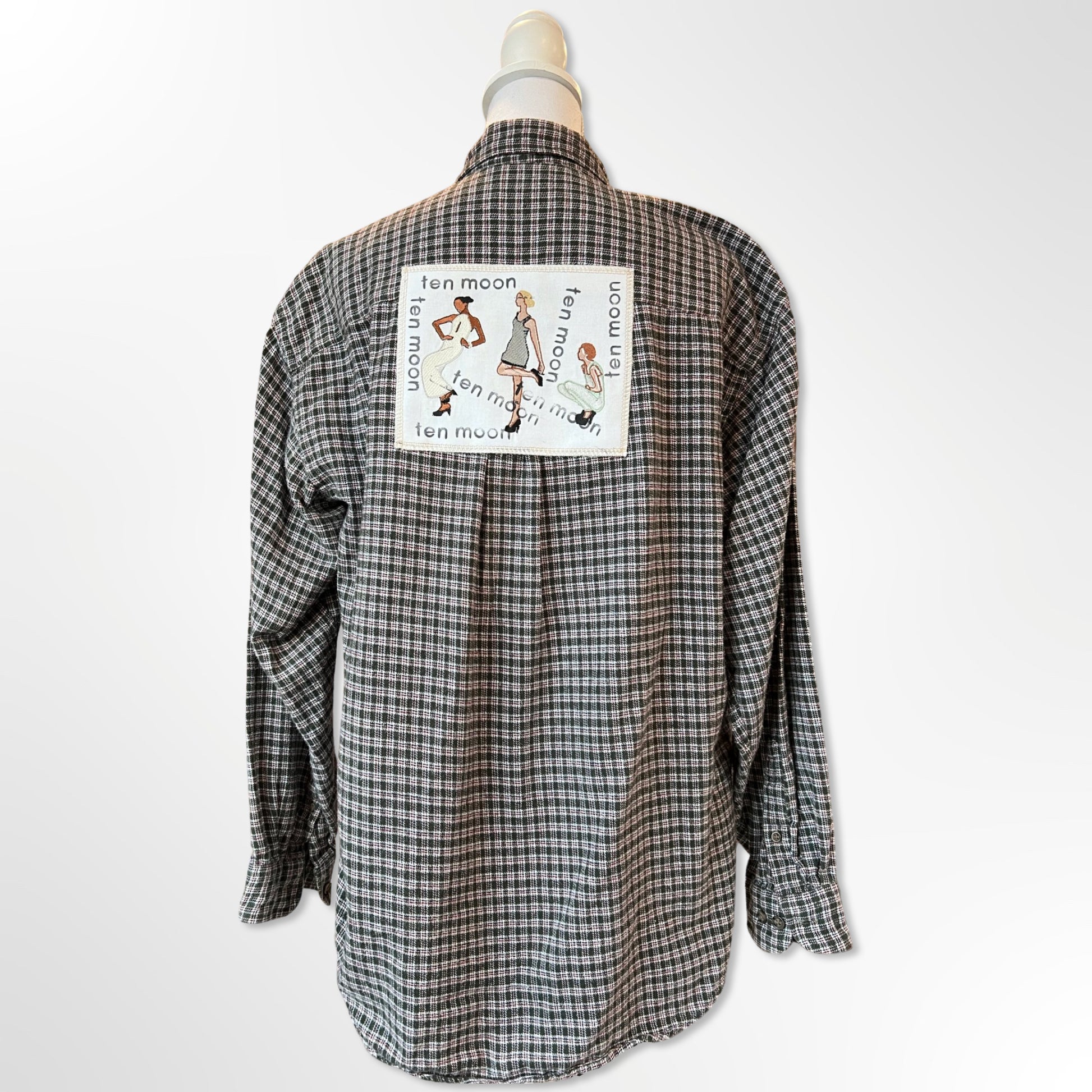A classic flannel enhanced with original Girls Night Out patchwork.
