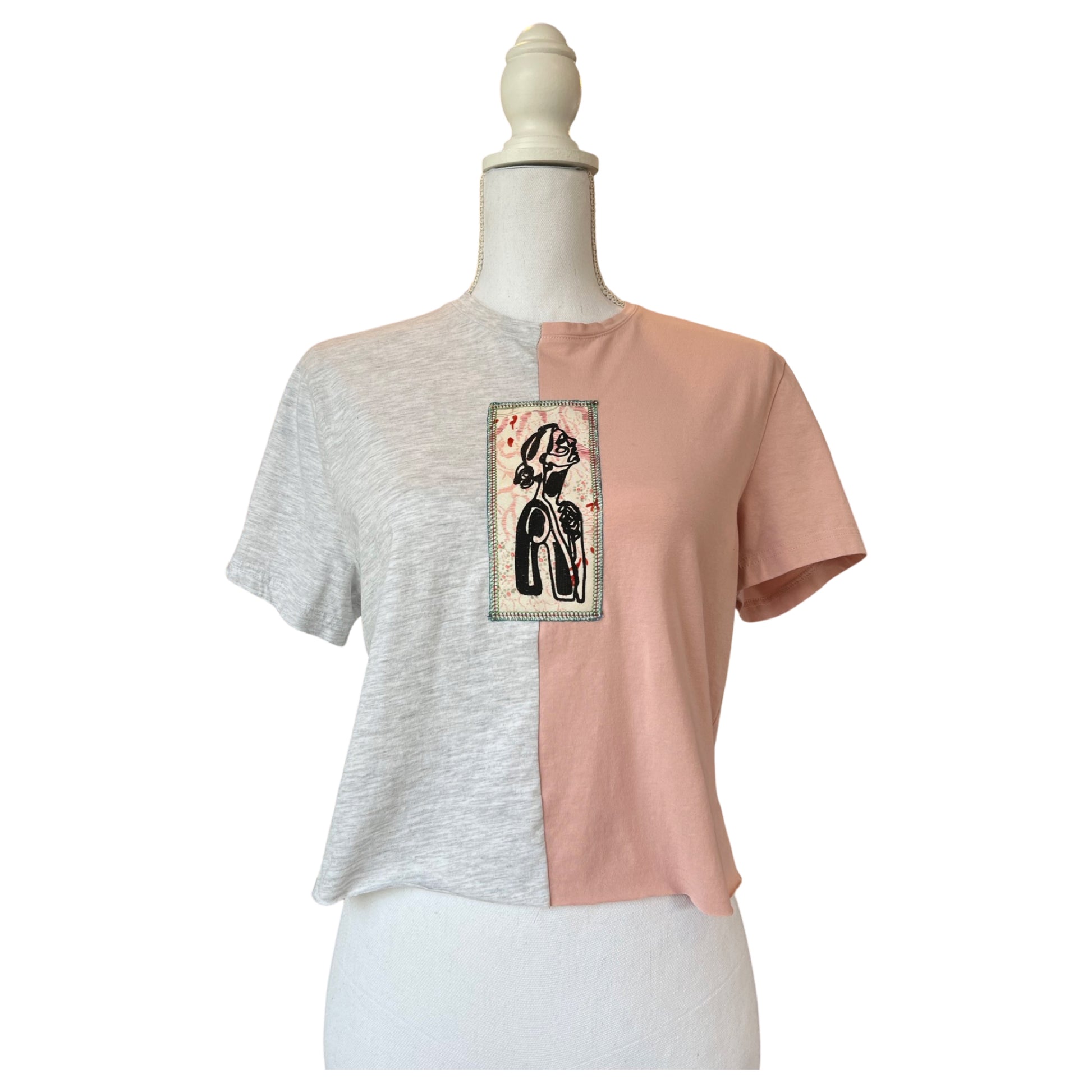 Two tees, blush pink and heather grey, deconstructed and recreated into one. Featuring our original, stamped Line Girl graphic across the front.